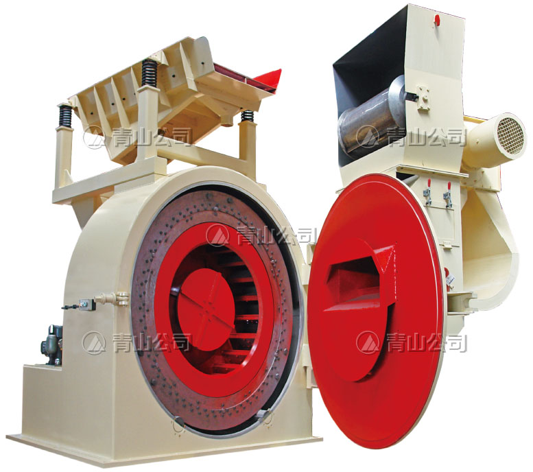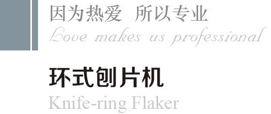 Knife-ring flaker including two main parts, feeding system and flaking system, the feeding system consists of vibrating feeder, magnetic separator, heavy objects separator, the flaking system consists of knife ring, impeller, machine seat, main shaft, driving unit, hydraulic system, and braking system.